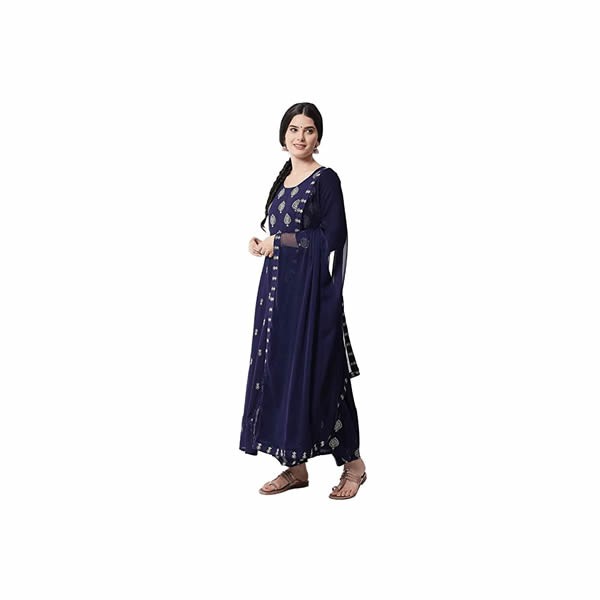 PRODUCT DETAILS Magenta printed Kurta with Trousers with dupatta Kurta design: Geometric printed Anarkali shape Pleated style Round neck, three-quarter regular sleeves Na pockets Floor length with flared hem Viscose rayon machine weave fabric Trousers design: Printed Trousers Elasticated waistband Slip-on closure Size & Fit The model (height 5'8) is wearing a size S Material & Care Machine Wash