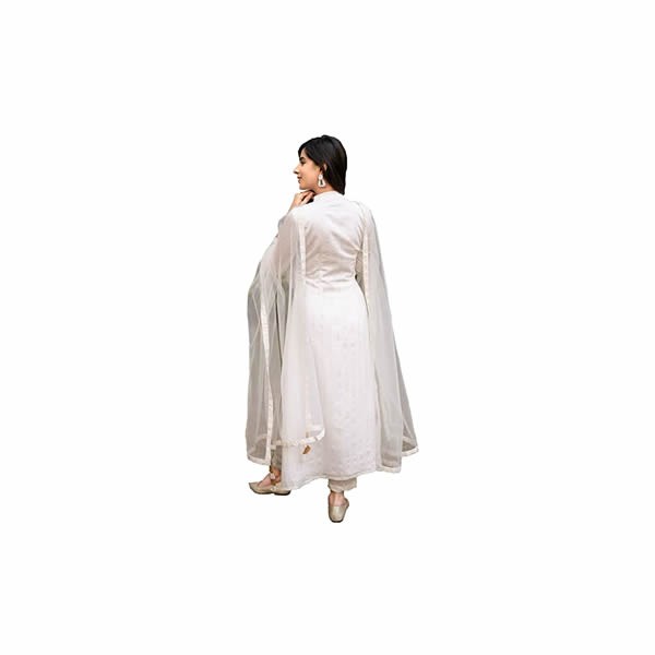 Women's Chanderi Cotton Fabric Salwar Suit with Dupatta (White_Semi Stitched).