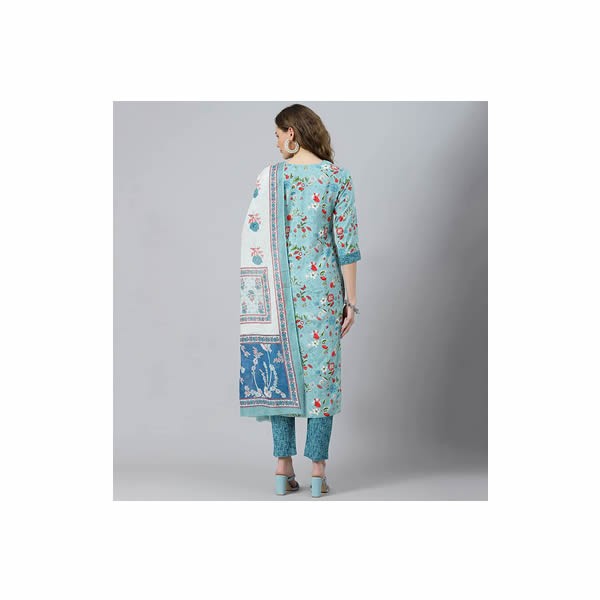Flaunt sartorial elegance in this beautiful jaipuri printed salwar kurta suit set for women by RATAN. Add style with the printed mull dupatta. Kurta and pants have pocket for multi purposes. Style the outfit with kolhapuri juttis to complete look for the day.