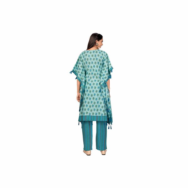 Women's Printed Muslin Stitched Kaftan Kurta with Pant Set