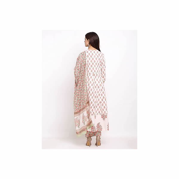 Women's Pure Cambric Cotton Printed Kurta Set With Dupatta (White & Pink)