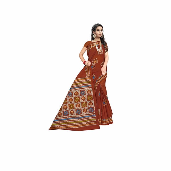 The elaborate work of tassel with kalamkari work gives a very elegant look to this saree. It jazzes up the appearance of all the special events and parties.