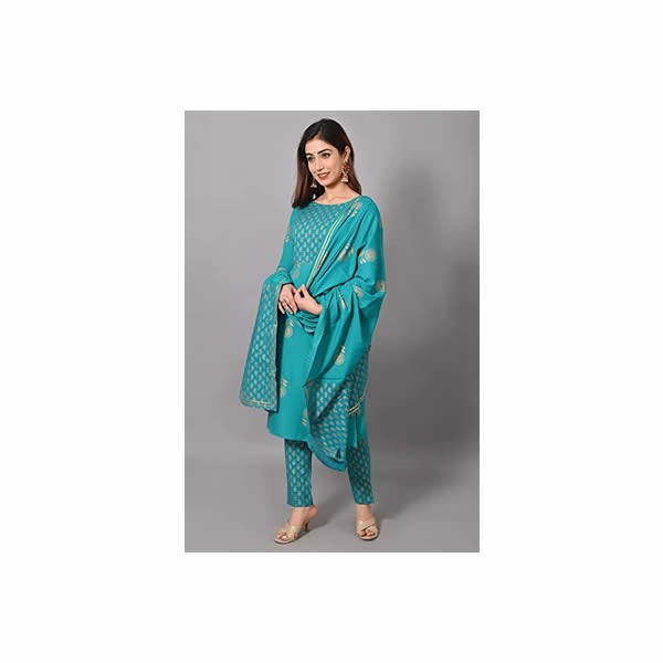 Women's Rayon Straight Kurta Set with Pant & Dupatta 0