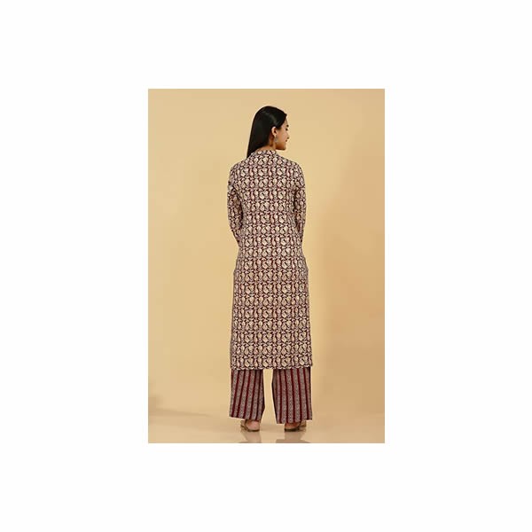 An amazing range of womens ethnic wear in soft and solid colors that looks perfect for regular wear. With beautiful designs and patterns. These apparels are very stylish and comfortable too. Get rid of the regular look this season wearing Kurta set by Kipek. This Straight printed Kurta palazzo set from Kipek exhibits Buttons on yoke along with Mandarin Collar & 3/4th Sleeves. Tailored from Rayon foil.