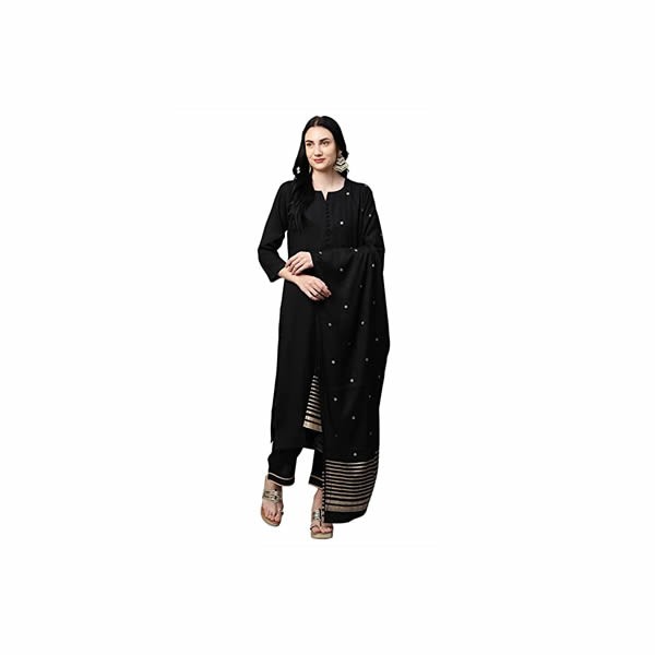 Women's Ruby Cotton Printed Straight Kurta with Palazzos & Dupatta (Black)