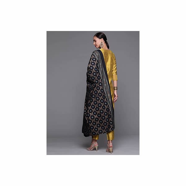 Women's Silk Blend Embroidered Straight Kurta Palazzo with Dupatta set