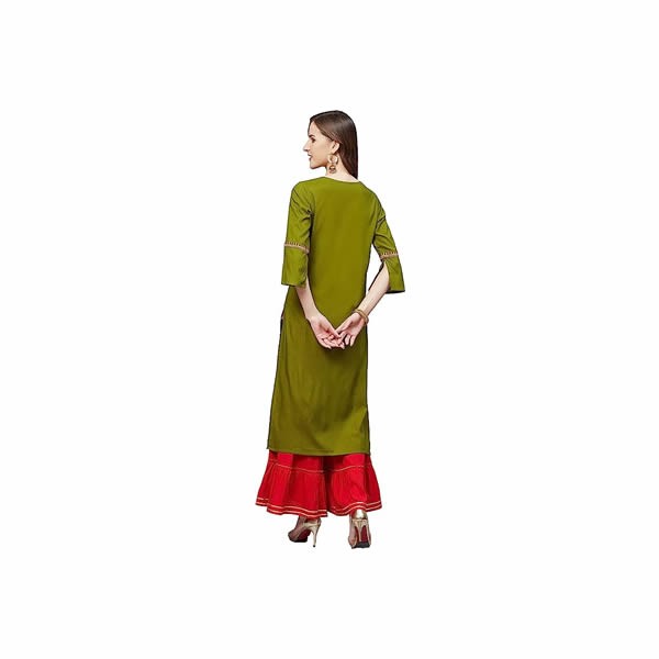 Women's Size Rayon Slub Straight Kurta (Olive Green)
