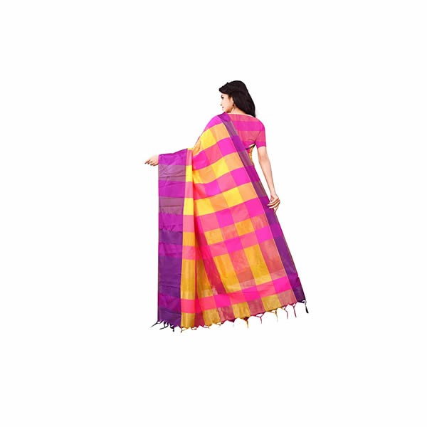 Women's Tussar Silk Checks Pattern Banarasi katan Silk Saree With Blouse Piece