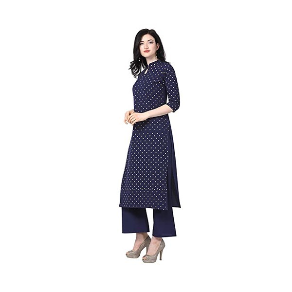 NAINVISH Women Maroon Crepe Straight Kurti with Palazzo Set