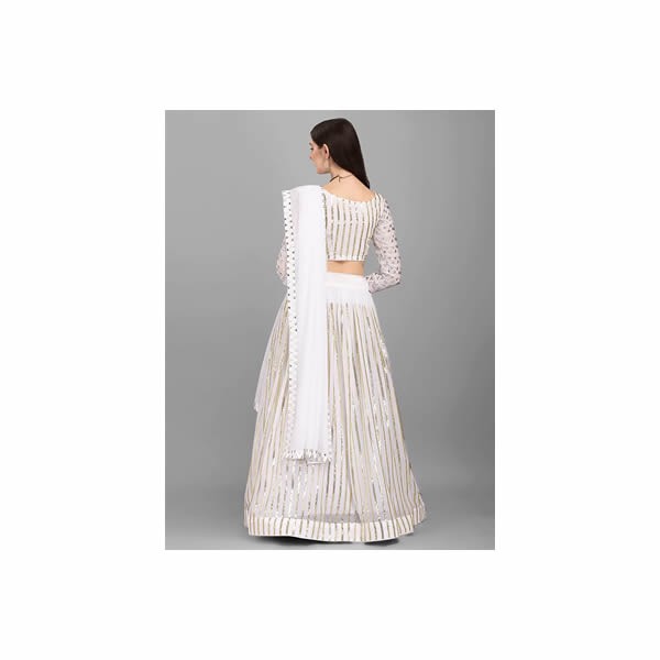 Fashion Basket Gerogette White Lehenga Choli For Womens (FB-LH-L8018_White)