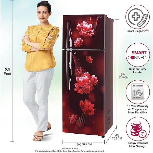 LG 284 L 2 Star Smart Inverter Frost-Free Double Door Refrigerator (GL-T302RSCY, Convertible, Scarlet Charm)