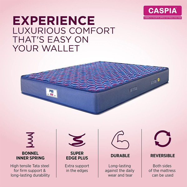 Peps Caspia 06 Inch Queen Size Woven Fabric Spring Mattress(Navy Blue, 75X60X06) with Two Pillows Free