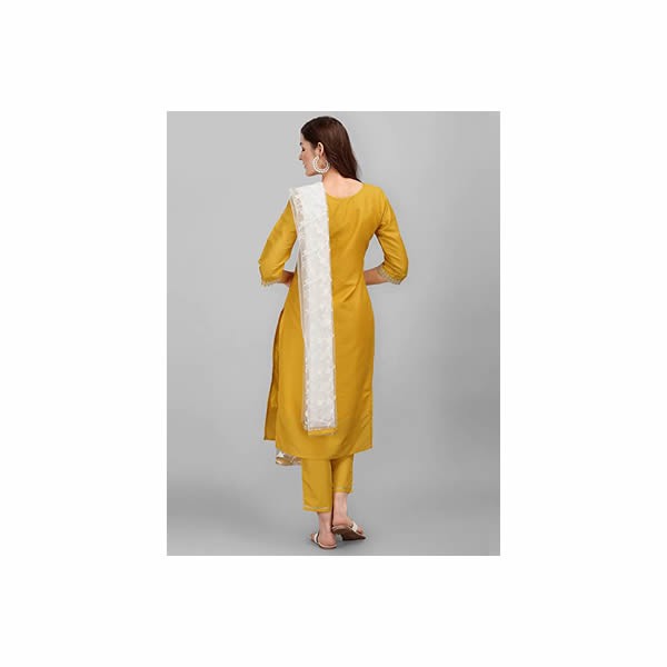 Silk Blend Kurta Pant and Net Embroidery Dupatta Set for Women 0