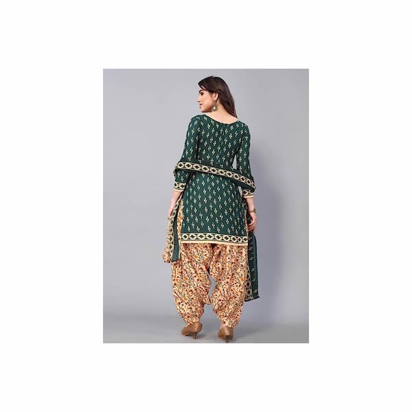 Women's Green Cotton Screen Print Unstitched Suit Set