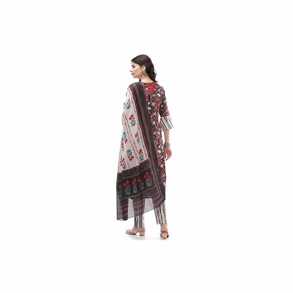 omen’s Cotton Readymade Salwar Suit Set. Printed Anarkali Flared Kurti Pant Dupatta Set 0