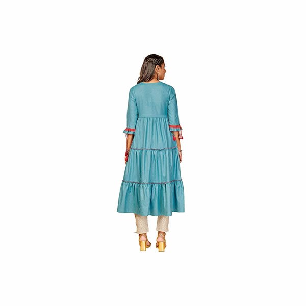 Women's Embroidered Anarkali Yarn Dyed Sky Blue Stitched Kurta