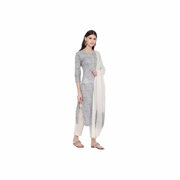 Women's Floral Print / Sequience Straight cotton mustard yellow Kurta,Palazzo& Dupatta has a Round Neck (v), 3/4 sleeve, Floral Print / Sequience, Straight hem, side slit. It will keep you comfortable for a party wear look. Pair it with high heels and look effortlessly chic and fashionable.