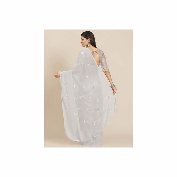 Women's Georgette Saree with Mirror Work (TI2830_Grey)