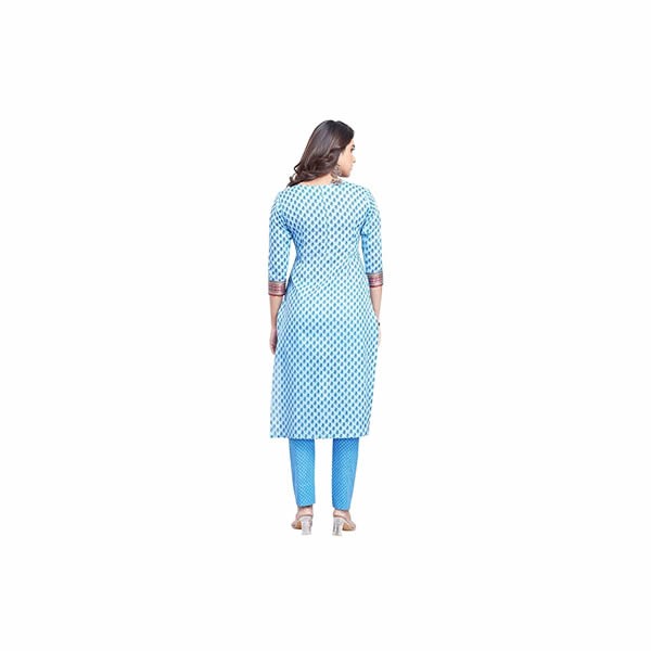 Made with 100% Cotton, this Jaipuri Punjabi Suit with Gadwal Border is specially designed for ladies & girls to give them a stylish and beautiful look. The high quality stylish print with intricate kalamkari designs gives the wearer a gorgeous look. You can wear it as a casual wear or as an office wear. It will also suit as a multi purpose outfit. If you are searching for style, comfort and quality all at once, then this SKD is for you. So get this set today and wear it to look beautiful, gorgeous and elegant at all times. Fabric : Cotton. In the Box : 1 Top, 1 Bottom, 1 Dupatta. Wash Care : Wash with like colors. Color : Blue Print Pattern : Block. Please Note : The Accesories shown in the images are for representational purpose only.