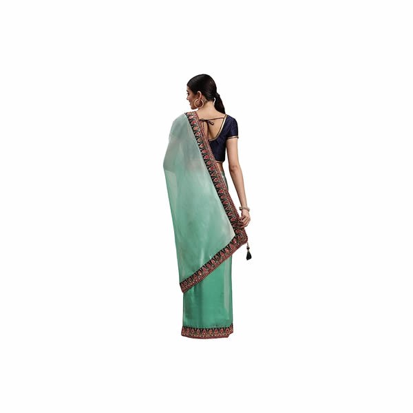 Women's Saree, Border Saree with Blouse Piece, Traditional Womens Saree, Rayon (Pista)