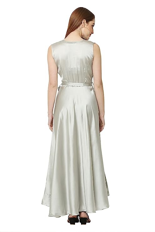 Women's Satin Fit & Flared Maxi Dress/Anarkali Dress/Gown/Long Frock for Women and Girls