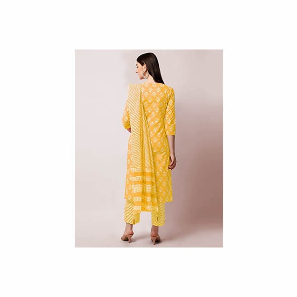 Get a charming traditional look with this beautiful ethnic Kurta Set with Trouser Pant and Dupatta made of high-quality fabric Cotton. This Straight Fit top promises it fits good on your body shape, also offering extra 1 inch margin for customize need and leg movement for all day comfort.
