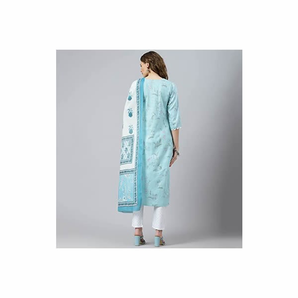 omen’s Cotton Readymade Salwar Suit Set. Printed Anarkali Flared Kurti Pant Dupatta Set 0