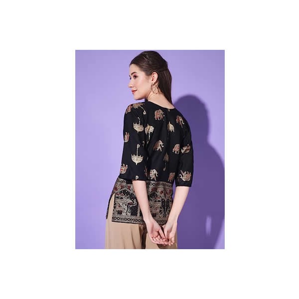 This printed short kurti is made of soft rayon fabric, round neck with V Cut, 3/4th sleeve, embroidery work on neck and animal printed on front area, gives this short kurti/top an awesome look, This can be used for festivals, parties and weddings and ideals for women and girls. Size Chart In Inches - Size : M "Bust 38 Length 26" Size : L "Bust 40 Length 26" Size : XL "Bust 42 Length 26" Size : XXL "Bust 44 Length 26"