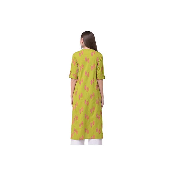 A women's cotton floral printed A-Line Kurta is a type of tunic-style shirt that is made of cotton fabric and features a floral print design. A-Line Kurta is a type of kurta that flares out from the waist to the hemline, giving it an "A" shape.